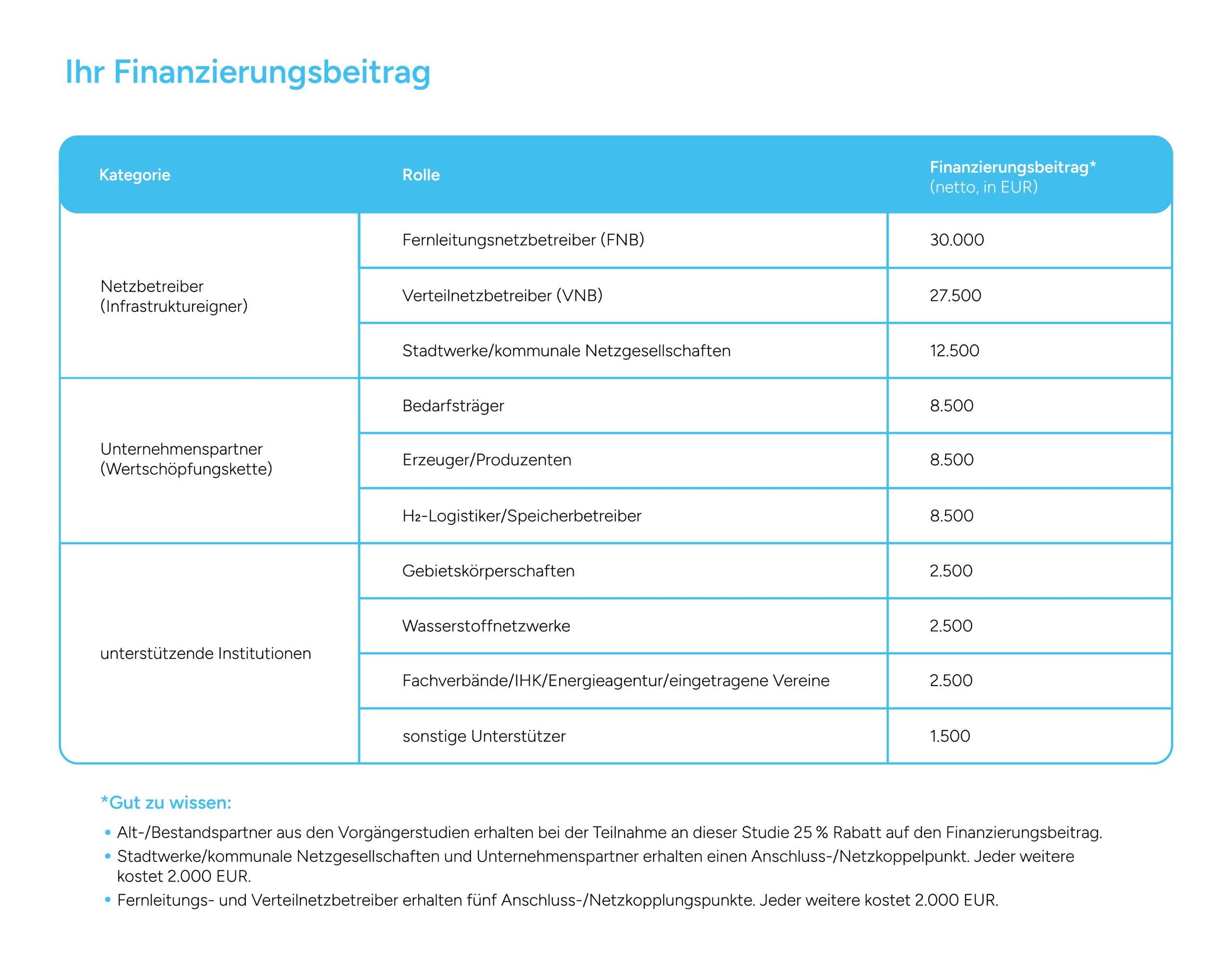 Interessierte Organisationen können sich durch die Unterzeichnung des Kooperationsvertrags an der Studie beteiligen und so einen aktiven Beitrag zur Entwicklung einer abgestimmten Wasserstoffinfrastruktur in Ostdeutschland leisten.