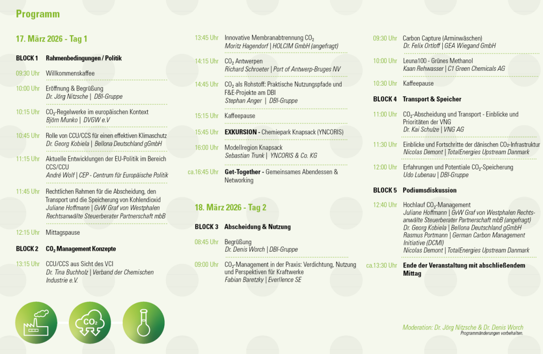 Vom 17.-18. März 2026 findet unser DBI-Fachforum CO2 in Brühl statt. Freuen Sie sich auf spannende Vorträge, intensive Diskussionen und den Austausch vor Ort sowie auf unsere Exkursion.